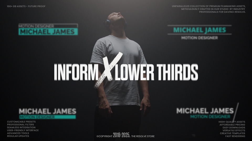 Download 10 free samples of InformX Lower Thirds designed exclusively for DaVinci Resolve users! These are just a demo – for the full range of 46 professionally crafted lower thirds, grab the complete pack. Elevate your DaVinci Resolve projects with sleek and customizable designs. Get started today!